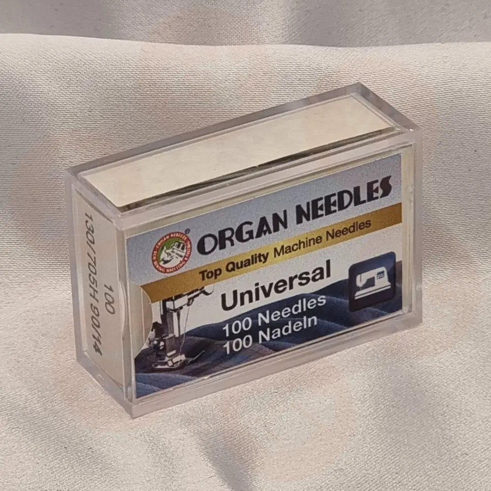 Universal Sliding box of 100 Needles, NM 90 / Size 14. Manufactured by Organ Needles.