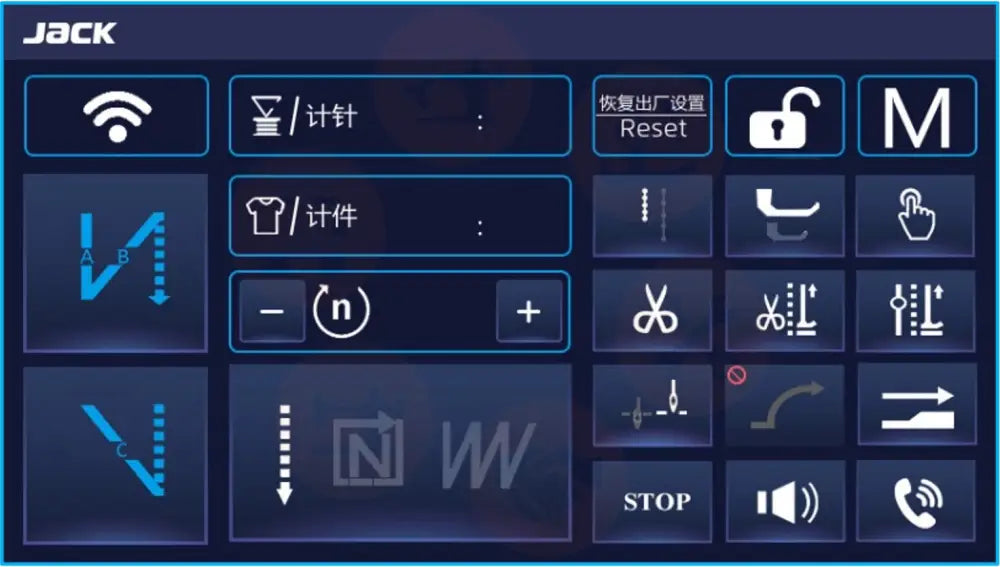 Voice guide and icons promptly,quickly and easily activate or deactivate functions such as backtack, presser foot lifter, thread trimmer and much more. Furthermore, by long pressing the button is possible to enter in function setting interface.