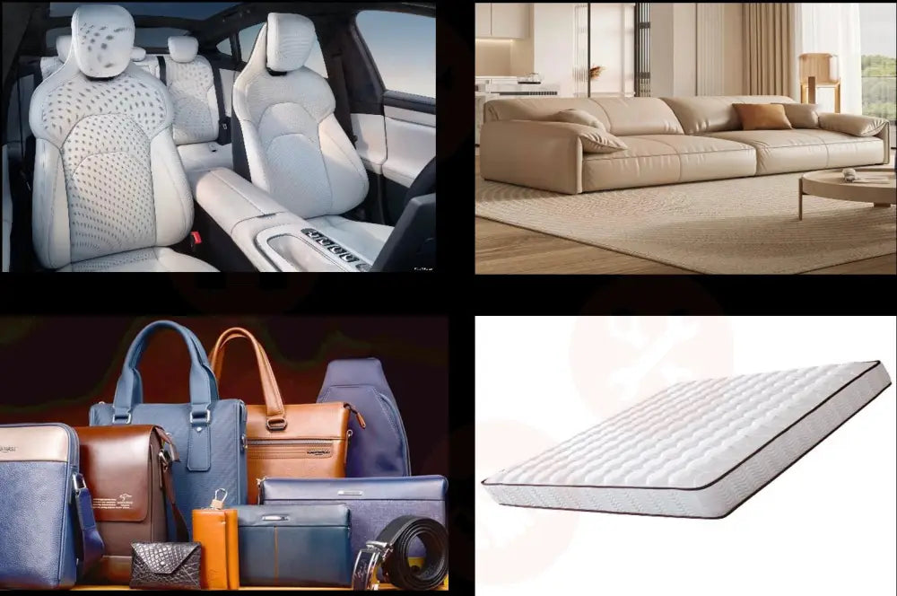 Machine with movement of feed dog, needle and feet specially designed to feed the heaviest materials such as automotive industry (steering wheels, seats, etc.), sofas, bags, mattresses.