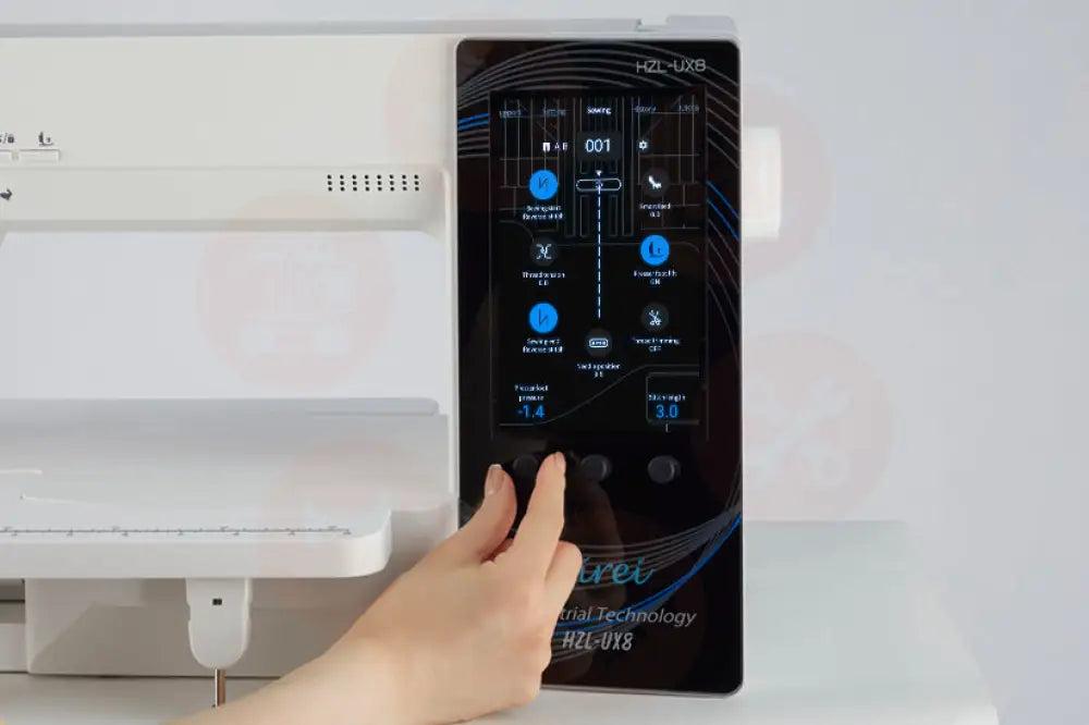 Feel comfort and power with JUKI’s UX8! Built with you in mind, the UX8 comes with new state-of-the-art features including a 7″ touchscreen capabilities with WiFi capabilities, a large 12″ of sewing space, bobbin thread alert, light colour changes, and a multitude of other functions.