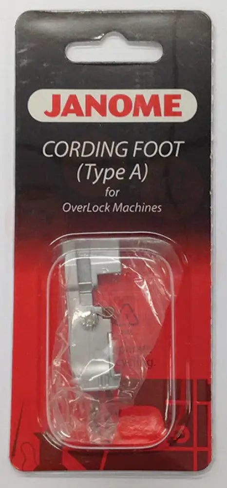 If your overlocker is equipped with a rolled hem facility, then you can make great use of the 'Cording Foot (A)'. Cording Foot (A) is ideal for bridal and evening wear and allows you to insert fine fishing line whilst rolling the edge of your material, giving you a beautiful firm but flexible finish.